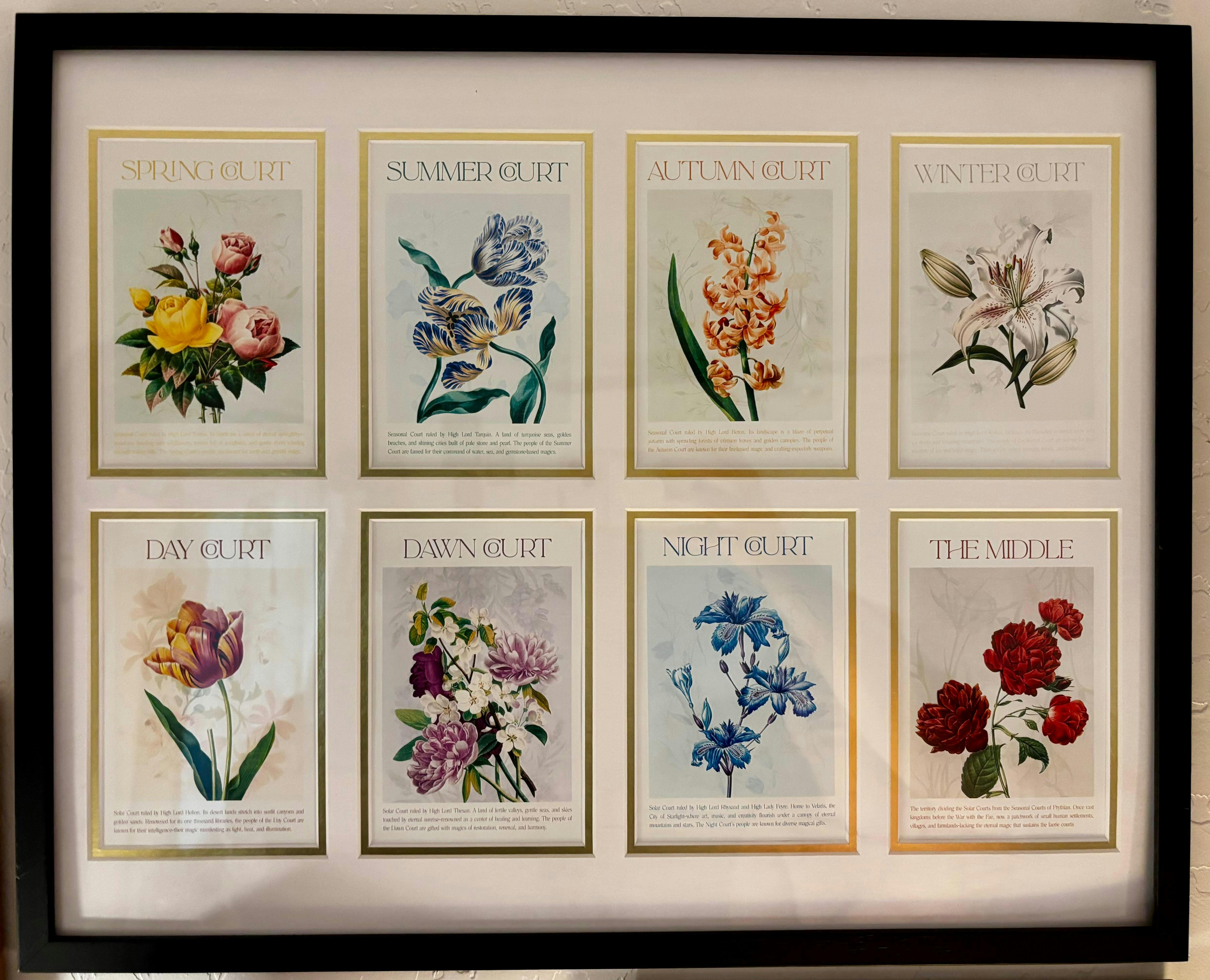 A tribute to the Seven Courts of Prythian + under the mountain. This set of 8 Courts of Prythian Flower Market features intricate floral designs representing the unique magic and lore of ACOTAR's world.
